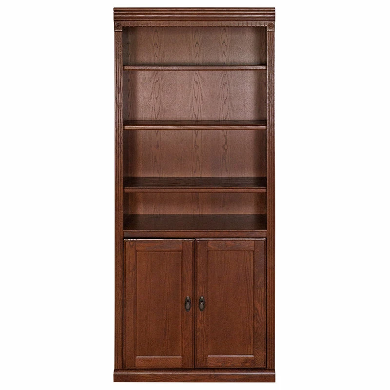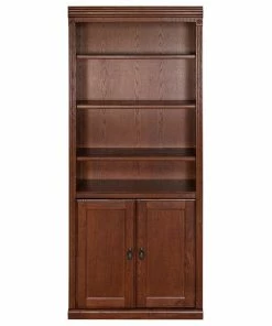 Handcrafted with timeless, classic styling, the Huntington Oxford office collection showcases the beauty of warm burnish brown hardwood solids and veneers. With a high attention to detail, the library bookcase features two fixed shelves for stability, four adjustable shelves for storage and two soft closing doors for more storage versatility. The distressed burnish finish on the Huntington Oxford Open Bookcase presents a unique, worn appearance that will truly withstand time.