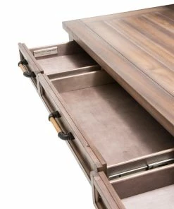 - Constructed using Acacia wood solids with veneers in a Reclaimed Barn finish