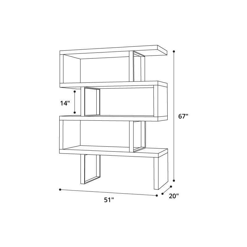 The Pearl bookcase adds a modern edge to any room. Four fixed hardwood shelves with ladder-style steel chrome supports give the Pearl a light appearance. Clean, modern lines and open shelving allow this stunning piece to act as a natural partition between adjacent rooms in the home. Measures 51L x 14D x 66H (distance between shelves 14.5H). Light assembly required. Engineered wood. Available in wenge or walnut wood finishes. Also available in white lacquer finish. Photo shown as pair. Sold separately. Imported.