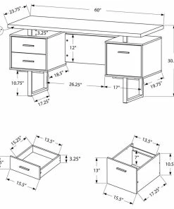 - This laptop/writing desk measures: 60 inches W x 23.75 inches D x 30.25 inches H