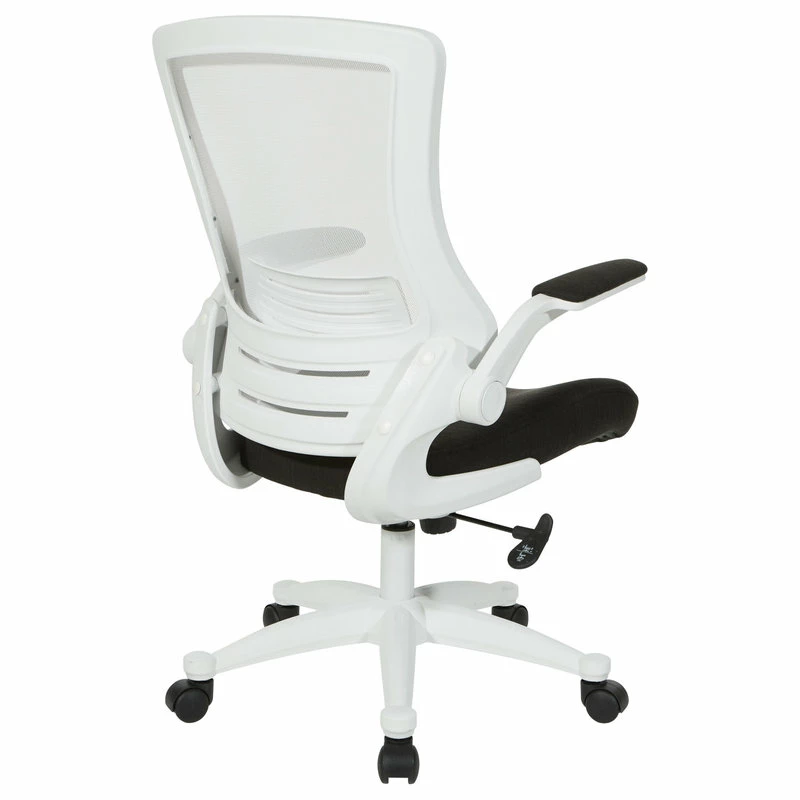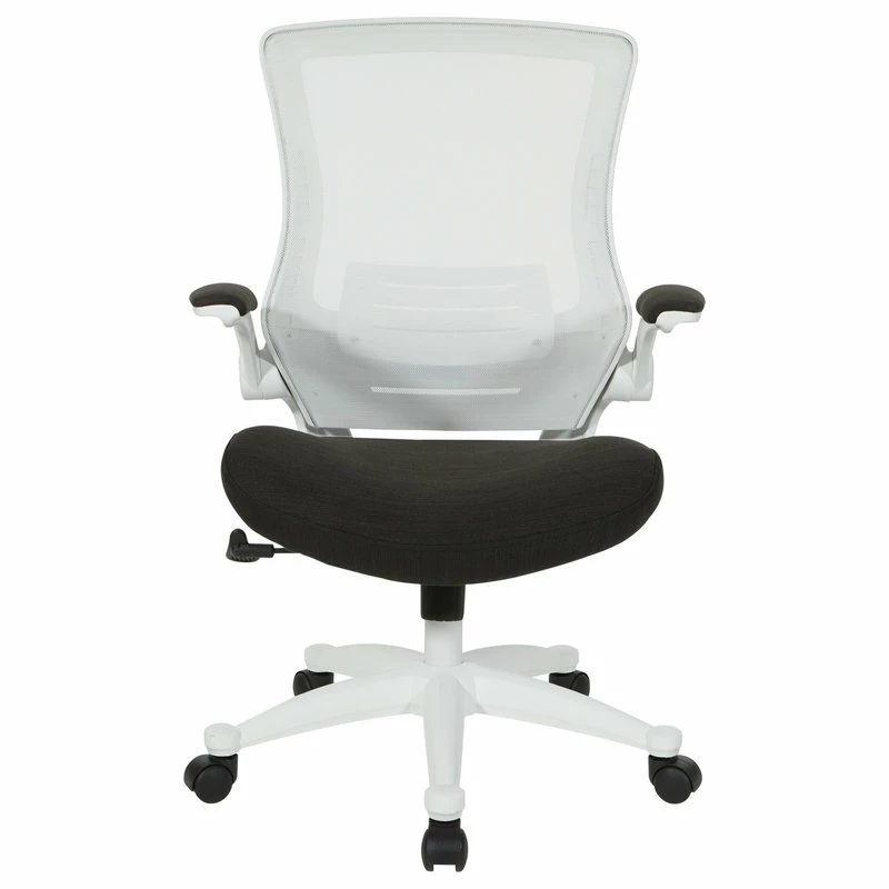 Everyone needs a smart, stylish chair to support them throughout the day and the Screen Back Manager’s Chair by Work Smart with padded flip arms with silver accents is sure to please. This high-style look includes a supple, padded seat and adjustable padded flip arms for hours of plush comfort. A breathable screen back with built-in lumbar support gives this chair its modern attitude while keeping you cool throughout the day. One-touch pneumatic seat height adjustment, locking tilt control and adjustable tilt tension ensure you’re comfortable and in an ergonomic position for maximum productivity. This manager’s chair also features an attractive ultra-modern white base with dual-wheel carpet casters that ensure effortless mobility.