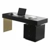 Sleek and contemporary, this rich walnut desk is the perfect combination of function, durability and design in a modern form. With clean lines, a floating top work station and sleek track metal legs, this desk will add pizzazz to any home office. Featuring two storage drawers and a file drawer to help keep you organized with a large desktop surface to provide plenty of room for all your hardware and working needs.