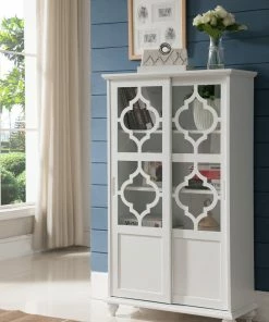 Accent your space and keep it organized with the stately Callum Wood Curio Bookcase. This wooden bookcase features two sliding glass doors, three shelves to display your favorite keepsakes and a white finish.