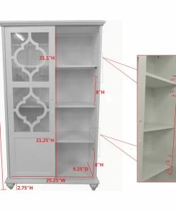 - The storage size above and below the fixed shelf: W 25″ x D 9″ x H 21.5″