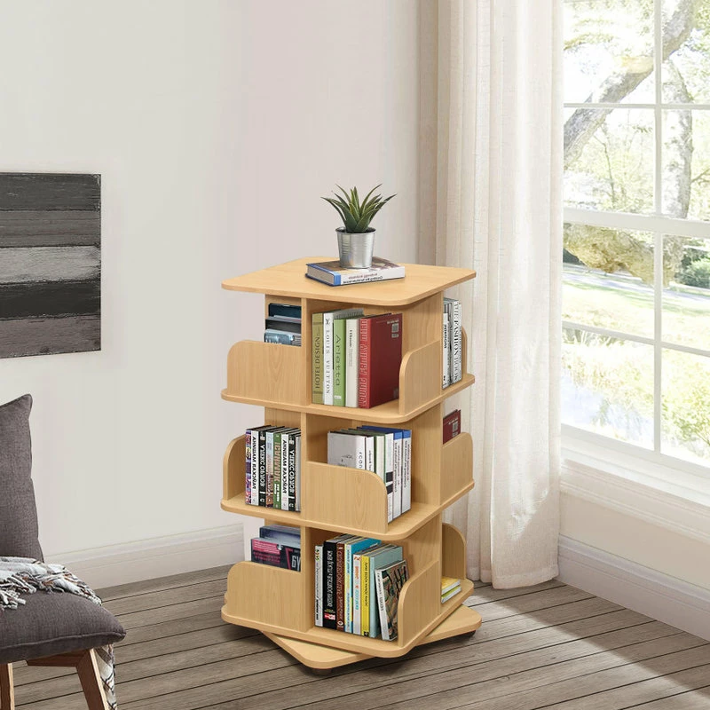 Oneonta 3 Tier Revolving Bookcase Tower Display Unit with 12 Shelves, Natural Wood, Contemporary. This clean-lined Oneonta Revolving Bookcase rotates a full 360 in either direction, allowing for easy access. The unique design provides a practical storage solution for any space and helps you maximize storage space. Blending with any decor, this Oneonta Revolving Bookcase is suitable for any style of the room, and the minimalist style will perfectly match any room in your home or office.