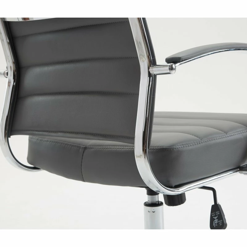 Lift the aesthetic of your home or office with a stylish and well-built management office chair. A selection of vegan leather colors offers upholstery that brings a sophisticated touch. Enjoy ergonomic benefits with a tension-controlled tilted seat and adjustable seat height. Padded arm rests and a high back round out the comfort details and make this an excellent choice.