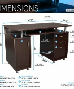 - Side CPU/storage cabinet with a removable shelf that can placed up, down or removed