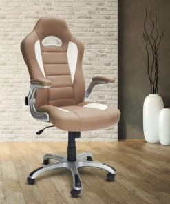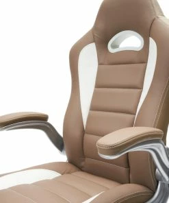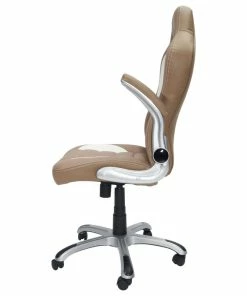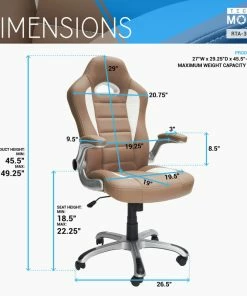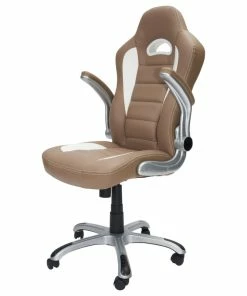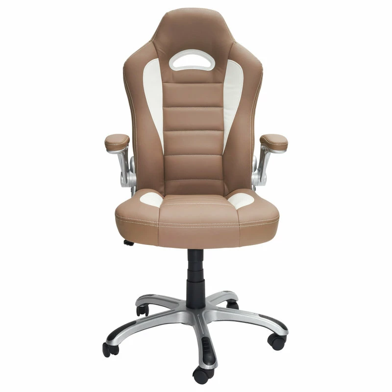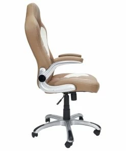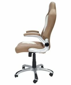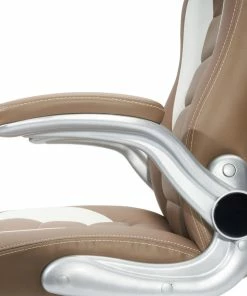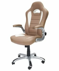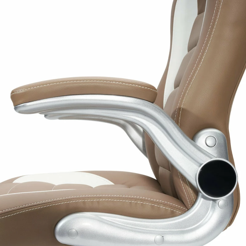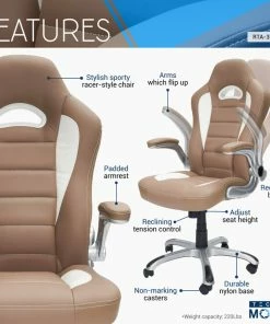 With the Techni Mobili Sport Race Executive Chair you will be the envy of the company when your co-workers, with its eye-catching Racer style with camel and white upholstery, durable silver color nylon flip-up padded arms & nylon 5 star base. This executive racer series chair comfortably fits users up to 220 lbs. This ergonomic chair will provide a comfort, durability all in a modern sleek design featuring both arms that flip up so you can push it just under the table top; this chair will make the perfect addition to spruce up your home or office space.