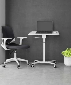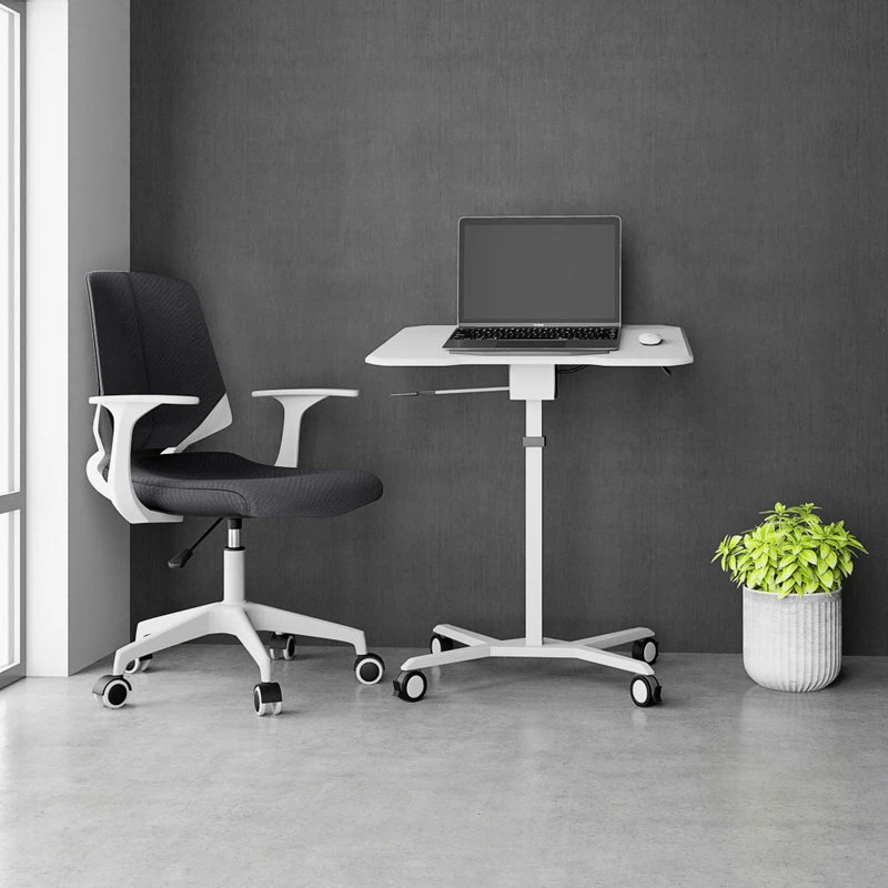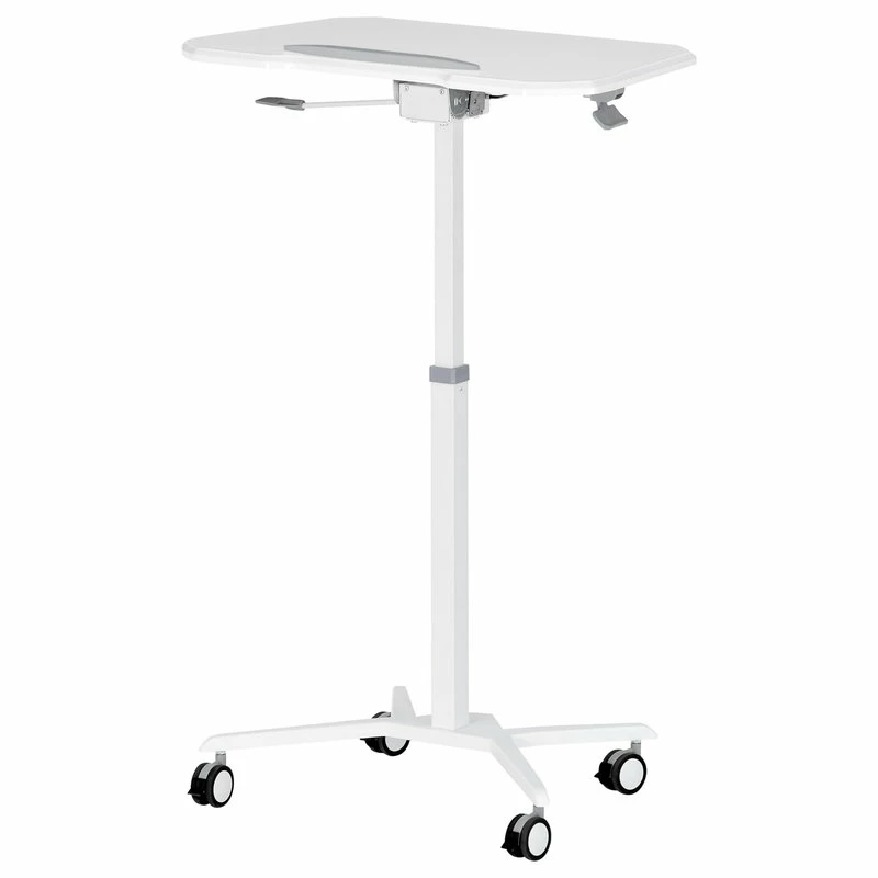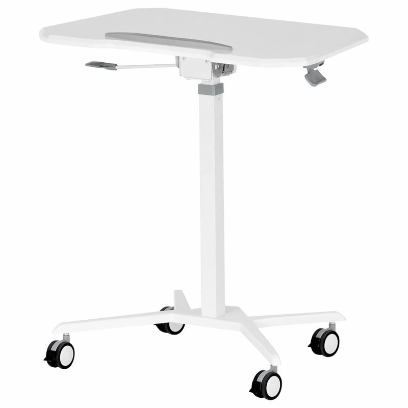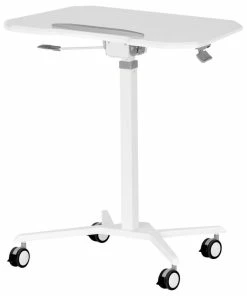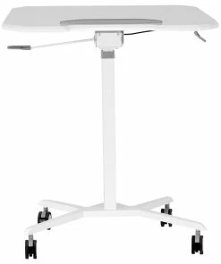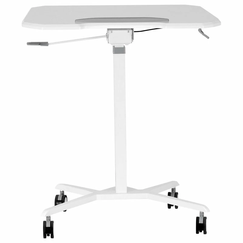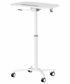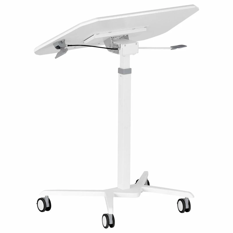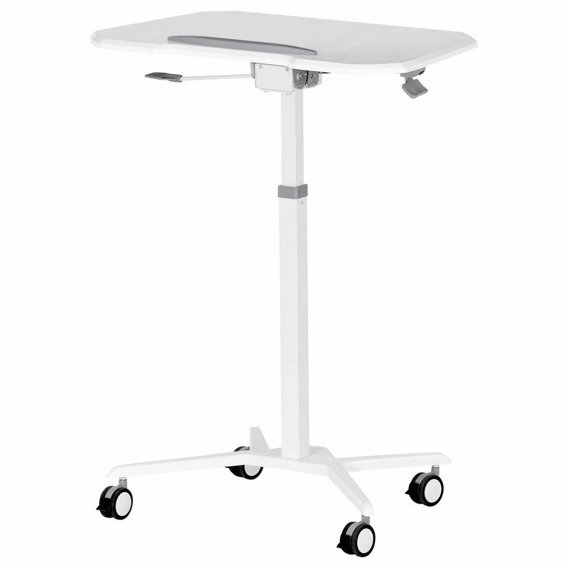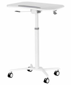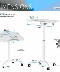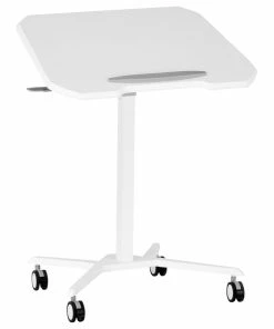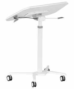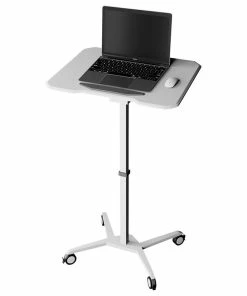 Techni Mobili Sit-to-Stand Rolling Laptop Stand offers an adjustable height mechanism that is compact, portable and is a perfect choice for a laptop or writing setup in a limited space. This Sit-to-Stand mobile laptop stand features a large tabletop with a tilt mechanism attached so it can be adjusted to your most comfortable working angle. It also features a safety edge-stopper to prevent objects from sliding down when tilted. The heavy-duty steel frame supports a sturdy structure, and the non-marking locking casters let you glide while maintaining the balanced level.