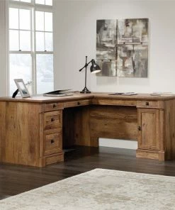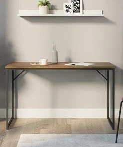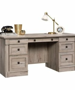 Create the wow factor in your home office or workspace with this industrial-inspired executive desk from the Boulevard Cafe collection. Its spacious tabletop provides yours with room for your laptop, folders, stationery, and all other office essentials – that includes your coffee mug. It features three drawers with full extension slides that open and close on smooth metal runners. Meet all your filing needs with the two lower drawers that accommodate letter-size hanging files. For additional storage, it also includes a cubbyhole along with two lower open shelves for easy access storage of books and papers. It is constructed from a durable, powder-coated metal frame and is accented with perforated metal panels to add an extra splash of unique style to this already beautiful office desk. Finished on all sides in black with a vintage oak accent, this visually stunning desk gives your office an exclusive look and will have you feeling like a top executive.