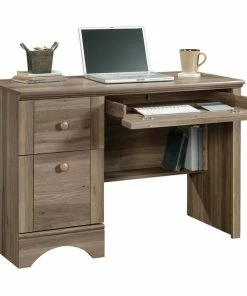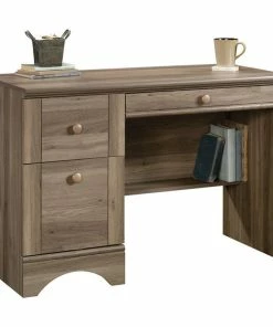 Looking to give your home office or workspace a fresh new update? Well look no further. This computer desk from the Harbor view collection is just for you! Its spacious desk top surface provides you with ample amount of room for all your must-have desk essentials – laptop, collection of notepads, cup of pens and of course your coffee mug. It features a large easy-gliding drawer / shelf with a flip-down panel for your keyboard/mouse. It also includes two storage drawers that open and close on smooth metal runners for easy access storage of all your miscellaneous office items. The lower drawer holds letter-size hanging files so you can keep all your important files and documents organized! With its simple design and cottage-inspired style, this attractive desk adds charm and beauty no matter where it stands! Finished on all sides in salt oak, this computer desk will have you feeling motivated and ready to get the job done.