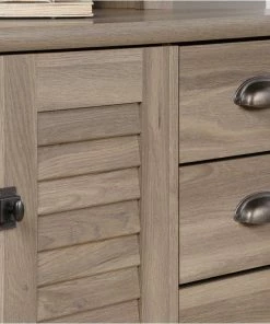 Taking care of business. Create the motivation you need to tackle all your major projects when you update your home workspace with the beautiful style of this computer desk with hutch from the Harbor View® collection. Its spacious desk top surface provides you with all the room you need for your must-have desk essentials like your laptop/computer, a cup full a pencils, a printer and of course your coffee mug too. It features a slide-out keyboard/mouse shelf that glides on smooth metal runners. It also includes two small drawers for easy access storage of miscellaneous office supplies like paper clips, scissors and stamps. Its lower file drawer with full extension slides can accommodate letter, legal or European size hanging files so you can keep all your important documents organized! Behind the louver detailed door is a dedicated storage area for your CPU tower. Its handy hutch includes optimal storage options with cubbyhole and vertical storage compartments. Finished in Salt Oak® and detailed with a bead board back panel, this stunning desk will have you ready to work in no time.