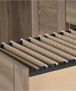 - Lower drawer with full extension slides holds letter, legal or European size hanging files to keep your important documents organized.