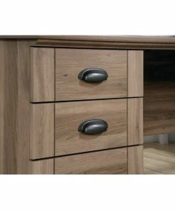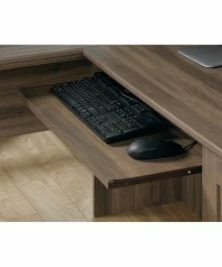 Maximize the overall space in your home office or work space with this corner computer desk from the Harbor Viewยฎ collection. Need a little elbow room? No problem. This office desk provides you with a large desk top surface where you can lay out all your work and have all your must-have desk essentials like your laptop, notepads, a cup for of pens and of course your coffee mug too! It features a slide-out keyboard/mouse shelf that glides on smooth metal runners. It features two storage drawers for easy access storage of miscellaneous office items like your scissors and stapler. The lower drawer holds letter or European size hanging files so you can keep all your important papers organized. Behind the framed panel door is a hidden storage area that includes an adjustable shelf and can also accommodate a vertical CPU tower. This desk also features a grommet hole so you can keep all your wires neat and out of the way. Finished in Salt Oakยฎ and detailed with stylish hardware, this beautiful desk is an office dream come true.