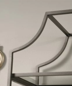 Out with the old and in with the new. Create a beautiful focal point in your home when you add the elegant style and modern design of this bookcase from the International Lux collection. This tall bookcase includes five open shelves for storage and display. Each shelf features safety-tempered glass for an extra touch of luxury that is sure to stand out. The spacious shelves are ideal for highlighting all your favorite home dΓ©cor like decorative plants, your array of knick-knacks, and framed photos of your loved ones. These large shelves also make a great spot to store items like books, stacks of magazines, and organizing bins. Its rounded edges and curved indent design give it a stunningly unique appearance that is sure to grab the attention of your friends and family. Constructed from sturdy metal and finished in bronze, this beautiful bookcase will have your home looking stylish and chic.
