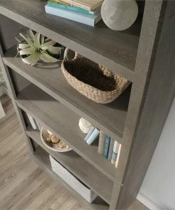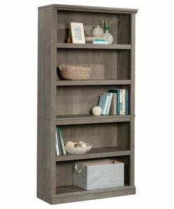 There is no such thing as too much storage space. Add the versatile storage options that your home needs while adding the beautiful style and design that you want with this transitional 5-shelf bookcase from the Sauder Select collection. This tall bookcase features five spacious shelves that provide you with all the room you need to store a variety of different items like your collection of novels, stacks of magazines, and organizing bins. These large shelves also make a great place to display home décor items like your array of knick-knacks, decorative plants and wireless speakers. This storage bookcase includes three adjustable shelves that have the ability to move to different heights to create flexible storage options for items of all shapes and sizes. Its simple charm and attractive good looks make it a perfect fit for any room in your home. Finished in Mystic Oak®, this handsome 5-shelf bookshelf is everything your home needs and more.