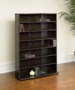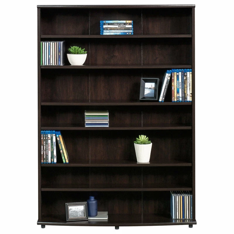 Stack it, store it and display it! Create the versatile storage options that your home needs while adding the charming style and attractive good looks of this multimedia storage tower from Sauder. It features seven spacious shelves that are ideal for storing an array of different items like your favorite books, your collection of movies, CDs, video games and so much more! It also makes a great spot to display home dΓ©cor items like knick-knacks, decorative plants and photos of your family and friends too. It includes six adjustable shelves that have the ability to move to different heights to create flexible storage options for items of all shapes and sizes. Its simple beauty and versatile design make it a perfect fit for any room in your home β the entertainment room, the living room, or in your office. It looks good no matter where it stands. Finished in Cinnamon Cherry, this handy storage tower is the solution to all your storage woes.