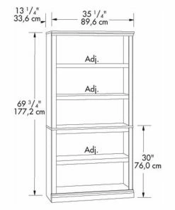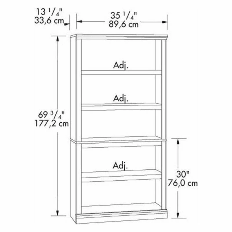 Store your stuff in style with this 5-shelf bookcase from the Sauder Select collection. With three adjustable shelves, this tall bookcase can be customized to fit your specific storing and display needs. There is room for all of your things. Display your tall books or vases, home dรฉcor bought at your favorite thrift store, you favorite seasonal candle, knick-knacks and much more. Your new 5-shelf bookshelf will be put together in no time with the patented slide-on moldings that allow for a quick and easy assembly. Finished in Oiled Oakยฎ, this wood bookcase will give any room a fresh new look. We hope you like what you see. Sauder designers travel the world and bring back the best and latest in style, finish, and color trends. This inspiring world travel is evident in the cutting edge and innovative furniture solutions we offer to you!