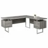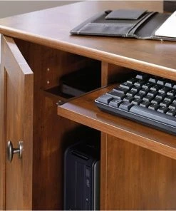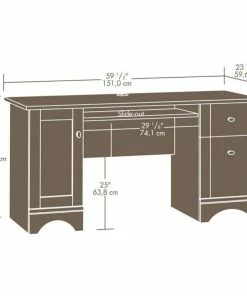 Whether you’re at the office or home, work in style with this maple-finish computer desk from the Sauder Select collection. A slide-out keyboard/mouse shelf with metal runners and safety stops keeps your top surface space free and helps with office ergonomics. This double pedestal desk includes two easy gliding drawers, perfect for storing your pens, folders, extra paper, and more. The desk top grommet hole for cord access, helps keep your cords organized and clutter free. The long filing cabinet drawer on this computer desk with storage can hold letter or European size hanging files, keeping your most important documents organized and easy to find. The storage area behind the door can hold a vertical CPU tower and an adjustable shelf to customize your storage options to your liking. Your home office desk will be assembled in a snap with a T-slot drawer system. With a Brushed Maple finish, this computer desk is the perfect addition to any home or office.