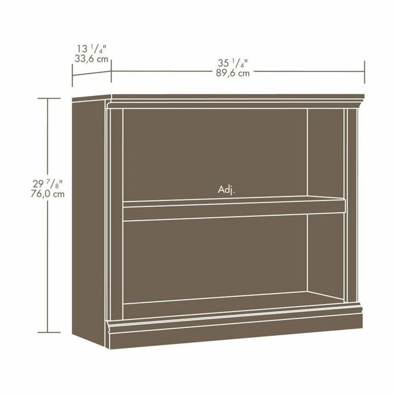 Is your home in need of a touch of fresh new style? Then weโve got just the piece for you! Add simple style and beauty along with optimal storage space with this 2-shelf bookcase from the Sauder Select collection. This handsome bookcase features a large adjustable shelf that is ideal for storing and displaying anything from your collection of favorite novels and storage bins of supplies to decorative plants and photos of your family and friends. It has room for all your stuff! The adjustable shelf has the ability to move to different heights to create flexible storage options for items of all shapes and sizes. Its spacious top surface provides you with an additional spot to display home dรฉcor items like an accent lamp, a vase full of flowers and your collection of knick-knacks. It looks good no matter where it stands โ in the living room, your office, down the hallway or even in your bedroom. Finished in Estate Blackยฎ, this attractive bookcase is just what your home needs.