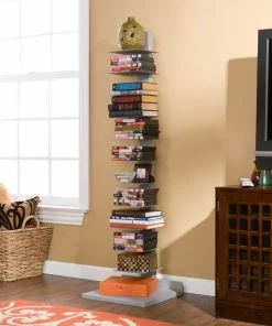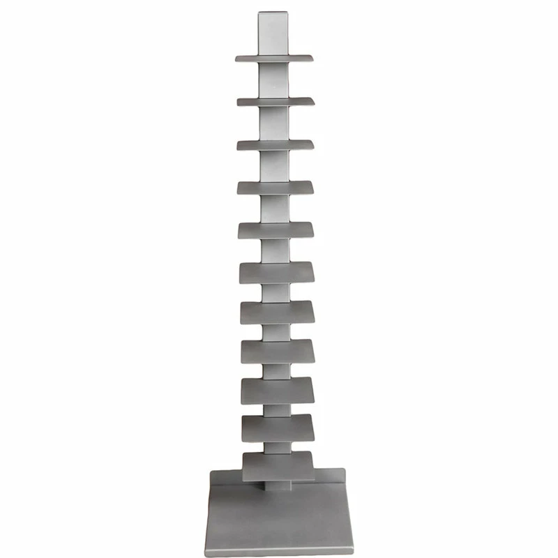 Use this unique bookshelf as an artistic focal point in your room. The tall slender design saves space and adds function. Extremely versatile, this tower shelf can work as a towel stand in the bathroom, bookcase in the bedroom, or even a media stand next to the TV. The 11 shelves are constructed of solid metal with a powder coated silver finish ensuring that no matter where you choose to use it, this shelf will always look as good as the day you bought it.