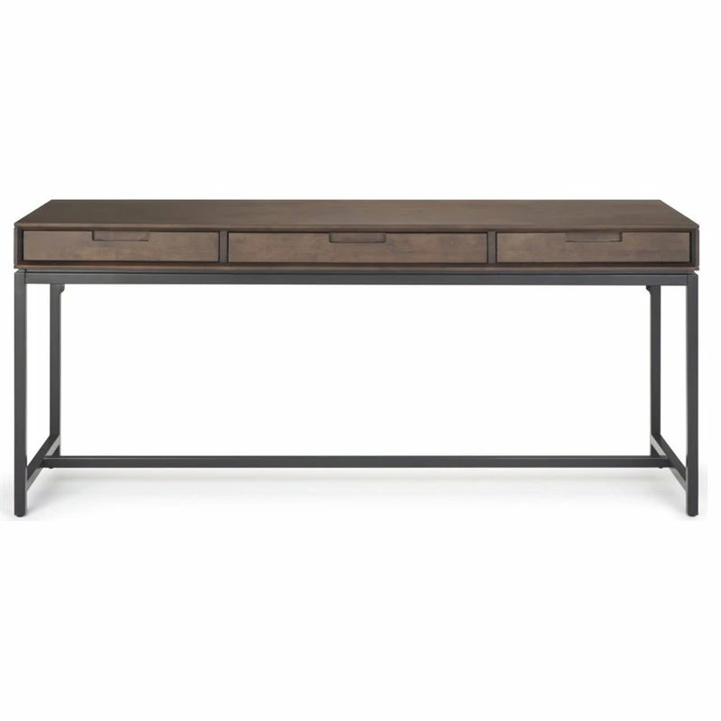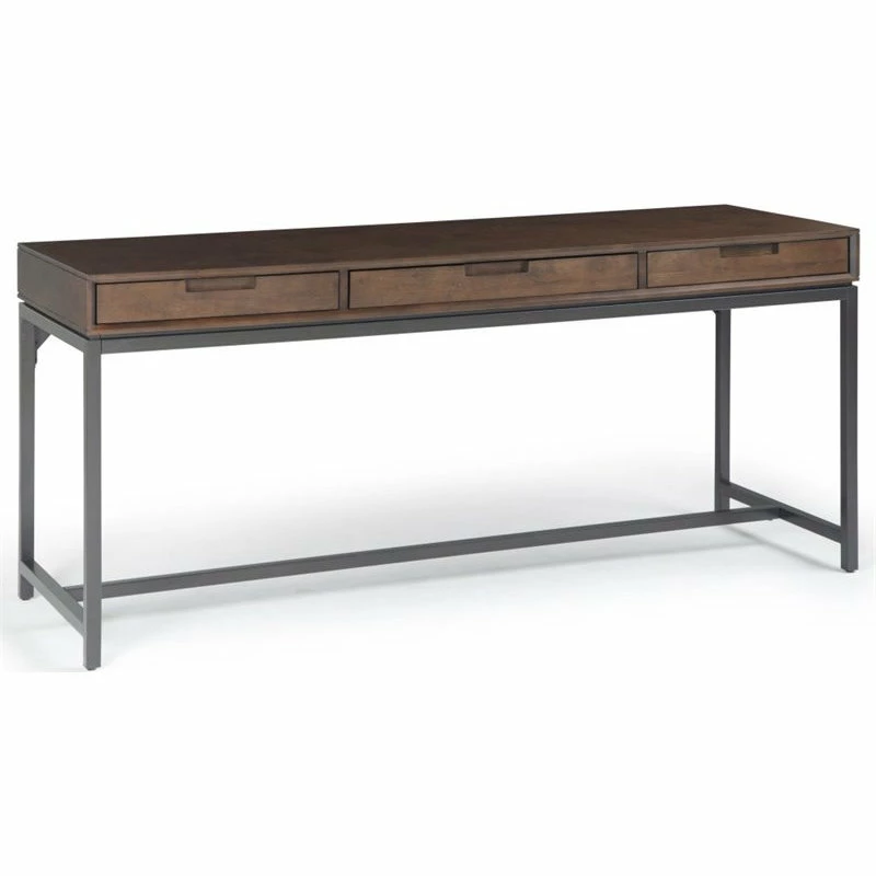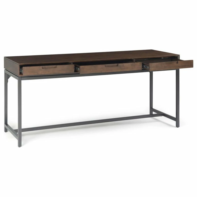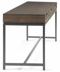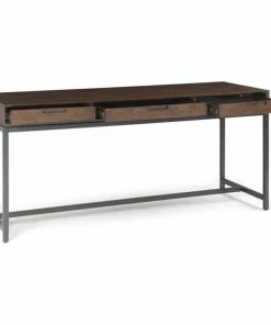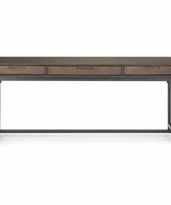 The Banting Collection is made from richly-grained solid Rubberwood. This mid-century modern industrial collection has a clean angular metal base, with square, simple modern drawer and table top. With no visible hardware, and only simple wood pull handles, the solid Rubberwood top, is simple and uncomplex. The Banting Desk has two large working side drawers with ball bearing drawer glides and one centre flip down drawer/keyboard tray to maximize functionality. The 24″ x 72″ size is large enough for a well appointed executive home office for a desk that can really handle the workload. The Banting collection includes coffee, console, end tables, tv stands, sideboard buffet, desks and bookcase.