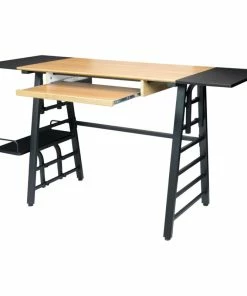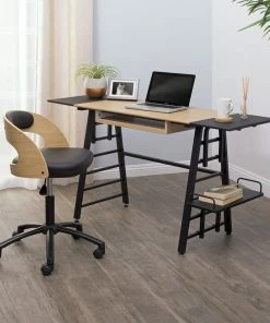 Not everyone’s office area is the same. So why not have a desk that is versatile enough to fit your office and your needs? The Ashwood Convertible Desk by Calico Designs allows you to expand your table top with extensions that can be also be used as additional storage shelves along either leg. The attractive Ashwood and Graphite finish is a handsome solution to your work area. The keyboard shelf/hideaway shelf is helpful in keeping the rectangular desk top clear. Overall Dimensions: 55.25″ W x 19.75″ D x 30″ H / Two Removable Table Extensions: 9.75″ W x 19.75″ D (Item # 51240). Need a matching chair to go with your desk? Our Ashwood Chair # 18700 is also sold on Houzz.