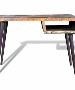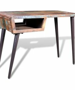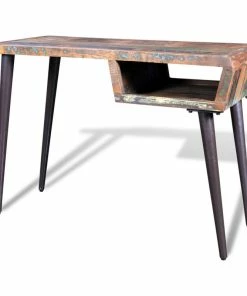This desk, with a reclaimed wood table top and 4 durable iron legs, is a timeless accessory for your home. Its solid wood top provides a stable and secure surface for placing your glasses, vases, fruits or ornaments on. The desk has a compartment under the table top, which offers you extra storage space. The table top is made from reclaimed wood, which means that every piece of furniture is unique and slightly different from each other. The furniture made from reclaimed wood has characteristics of different wood, like teakwood, acacia, mango wood, saal wood, etc. Reclaimed wood is solid, stable, durable, and beautiful. The nail holes or clear-faced grains bring their history with them and invite another generation to permeate them with their own. Keeping this piece of furniture at home will show your concept of resource conservation, environment protection and sustainable development. In addition, pure handmade craftsmanship adds a vintage spectacular style to the desk and feasts you with exoticism. Every process of recombining, polishing, painting and waxing is elaborately prepared. The antique desk will surely be a perfect addition to your home! Important note: Colors vary from piece to piece, making each of our desks unique; the delivery is random.