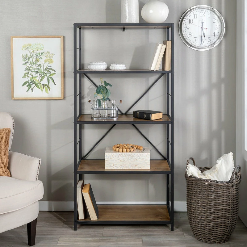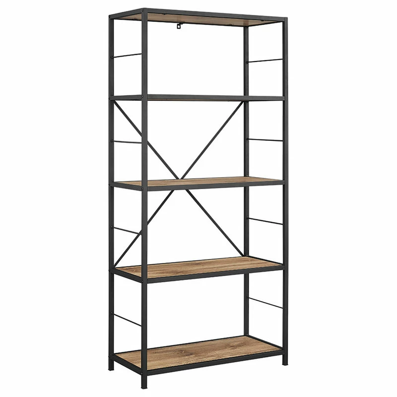 Make this rich, rustic bookshelf your showcase piece for your books, accessories, dΓ©cor and more. The various shelving layers offer ample storage space for all of your media needs and can be positioned near a wall in your living room, bedroom, entryway, or hallway. The mix of metal and wood shelves made of warp-resistant MDF and laminate make for a clean lined, rustic industrial appearance, complementing any room dΓ©cor and making it the perfect addition to your home.