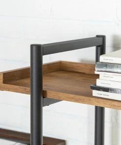 This 5-shelf urban pipe bookcase is perfect for a trendy, industrial-chic look. With a durable metal frame, and a sleek woodgrain finish made from high-grade manufactured wood, this piece is reliable to hold all of your books, trinkets, and collectables, while complementing any home office, hallway, living room, or bedroom.
