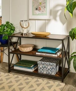 Showcase your books, magazines, media, and more with this beautiful bookcase. Durably constructed of high-grade MDF and powder coated metal, together create a sturdy, yet stylish shelving unit. The combination of metal and wood with x-shaped sides give a rustic farmhouse aesthetic, perfect for your entryway, bedroom, or living room. This bookshelf can make an urban industrial style statement, while also providing you with space to store your things. Decorate with your book collection, plants, and artistic elements to match your living space.