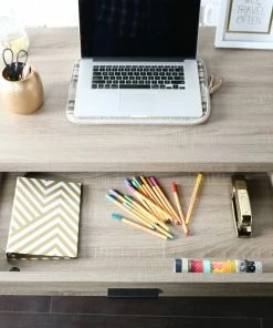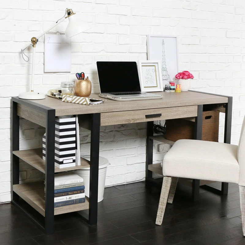 Complete your home office with this urban industrial style computer desk. Features a built in USB port and AC plug-in for additional power supply, that way you can charge your laptop or phone while in use. Its open side shelving and pull-out drawer provide ample storage space to fit your office essentials. Crafted from warp-resistant MDF and powder-coated metal legs for a sturdy yet stylish office desk.