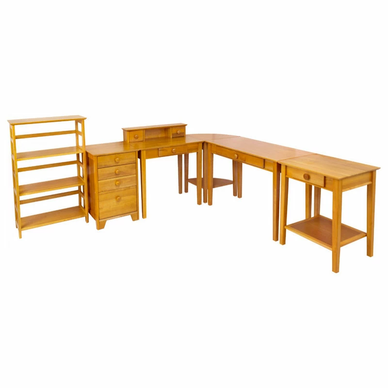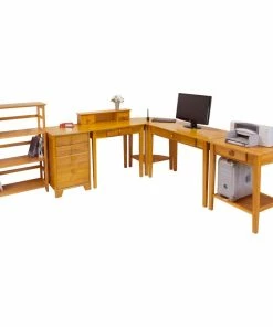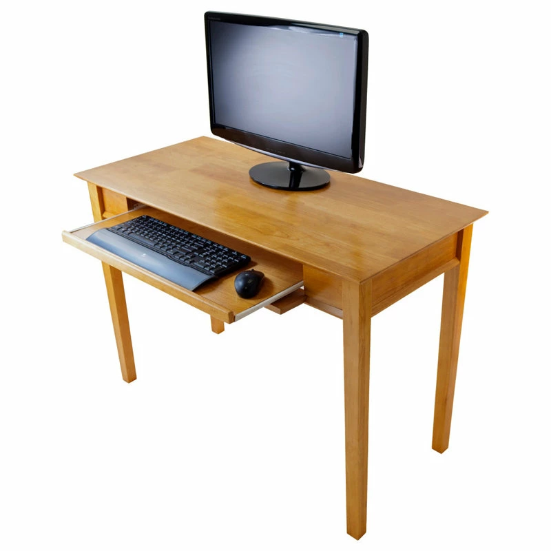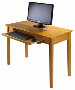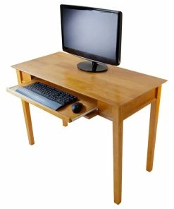 Featuring a broad desktop perfect for the monitor and a pull-out keyboard tray disguised as a drawer, this computer desk is classic and sturdy. The Honey Pine finish gives it a polished and sleek look. Mix and match with the rest of the Studio Home Office line.Features