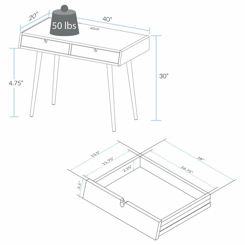 Designed for those who value tradition, liberty, and fully charged batteries: Our Freedom Desk with USB Ports is all about highlighting the timeless beauty of Solid American Red Oak while adapting to the technological needs of today. 4 USB ports are easily accessible for charging phones, tablets, bluetooth devices, and more. Its 2 spacious drawers smoothly slide in and out to store all of your productivity essentials. Great for bedrooms, home offices, and entryway organization. Assembly is simple and easy, just spin the legs into their proper holes, connect the power chord, and you’re done. A progressive piece inspired by the timeless crafting of American hardwoods from American Trails.