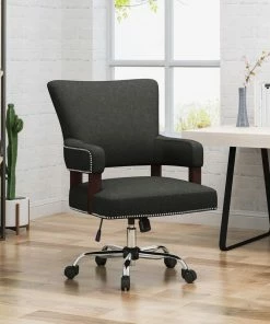 Flash Sale 🛒 GDFStudio GDF Studio May Traditional Home Office Chair, Dark Gray/Chrome 🥰